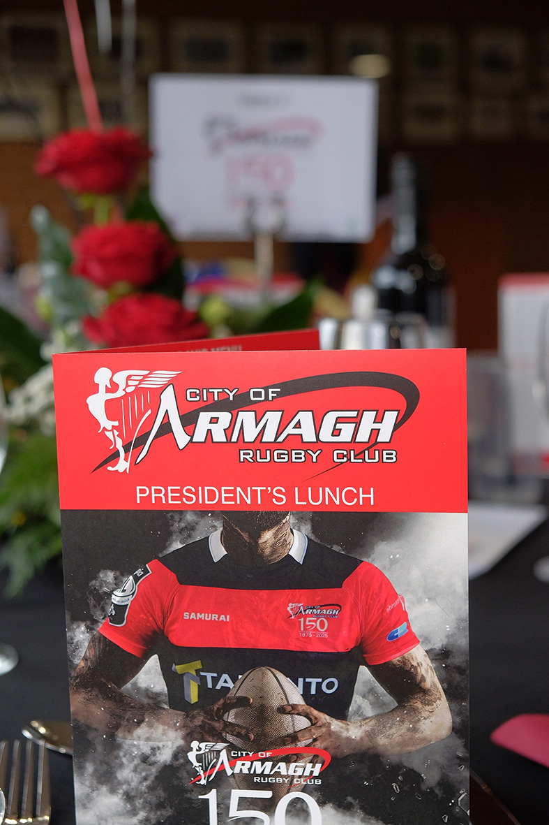 City of Armagh RFC President, Tim Taylor, hosted a special lunch at the start of January to launch the club’s 150th anniversary celebrations. Past Presidents, Past Captains and special guests were treated to a delicious 3 course meal sponsored by Yellow Door and Carnbrooke Meats. The president also thanked wine sponsor, Robb Brothers.