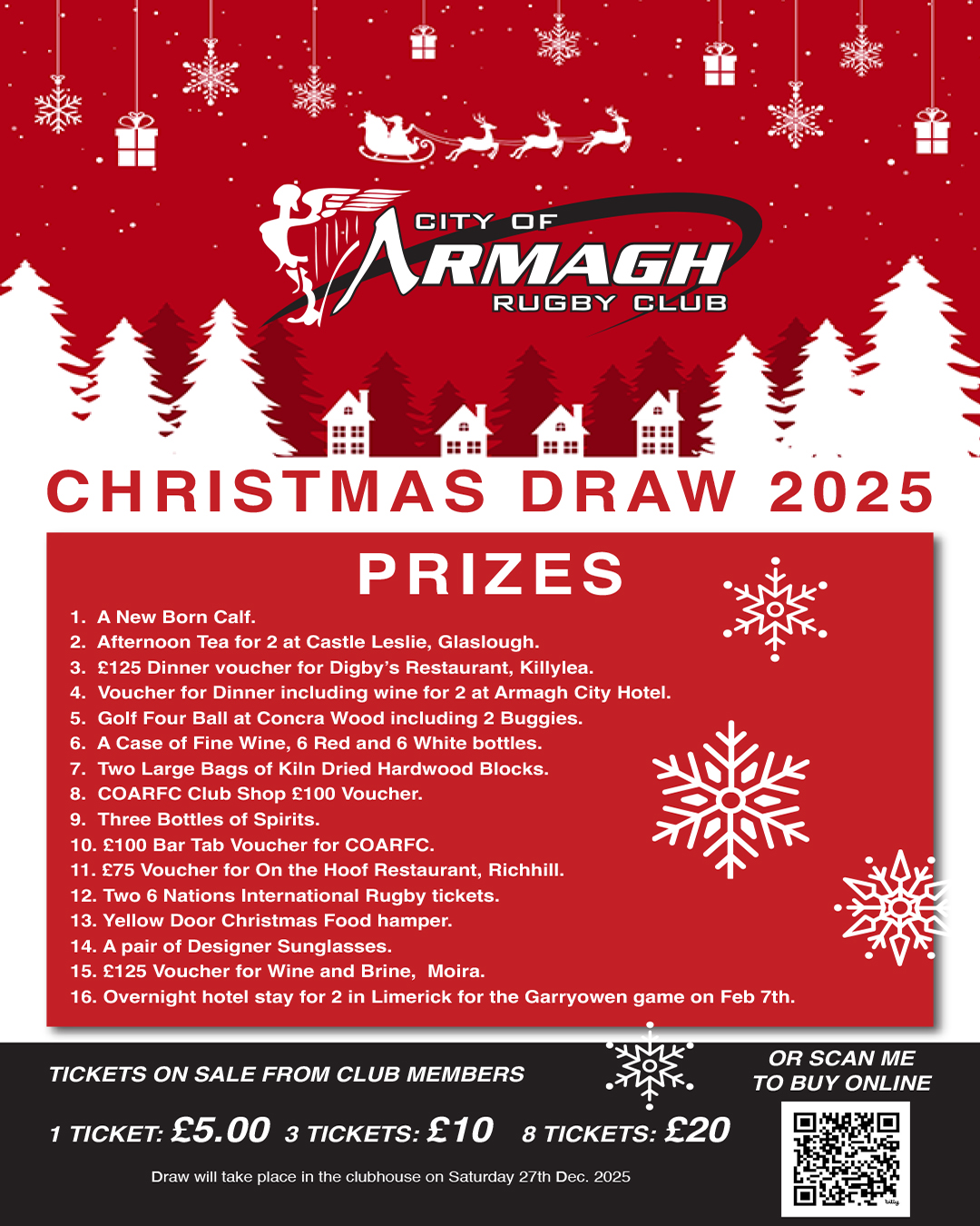 City of Armagh RFC is delighted to launch their annual Christmas Draw and this year we have 16 fabulous prizes!.